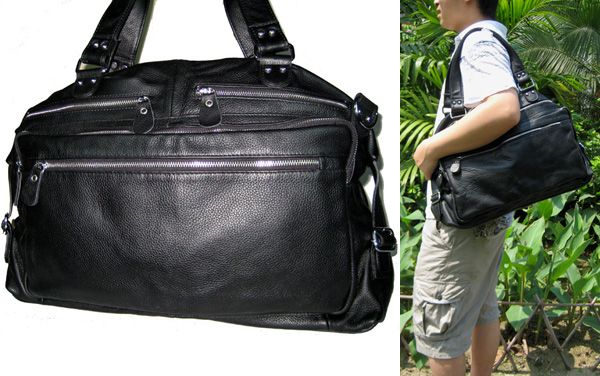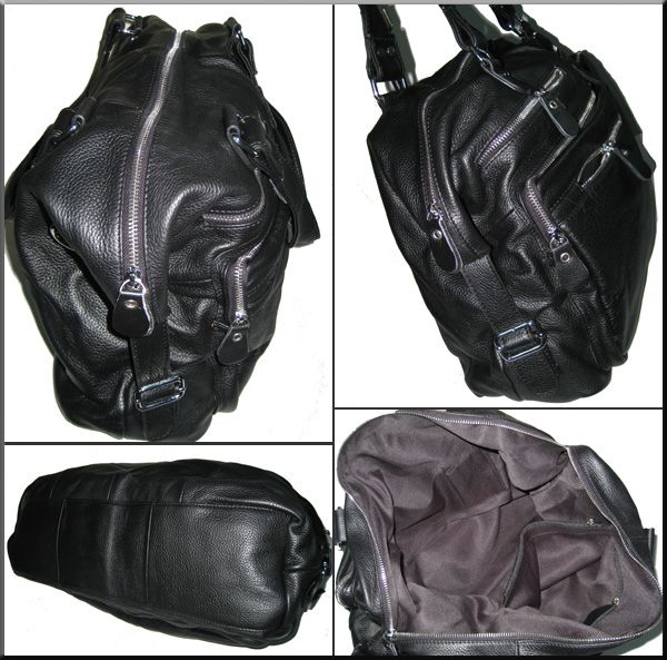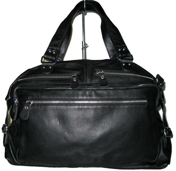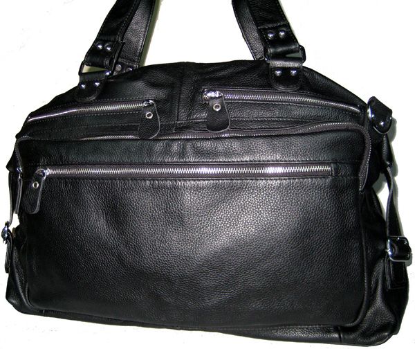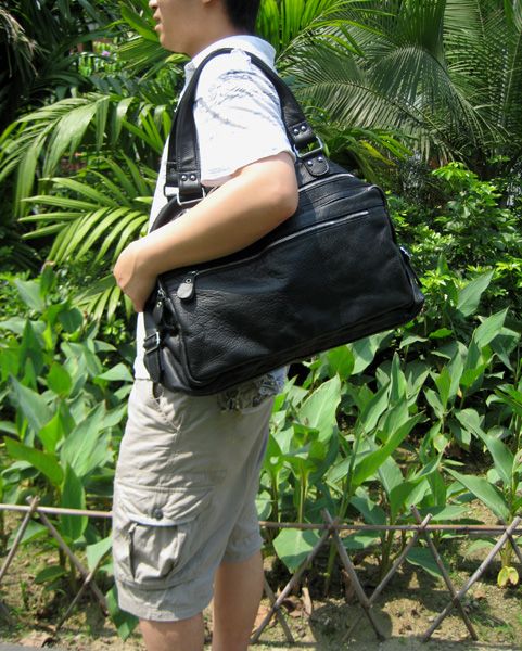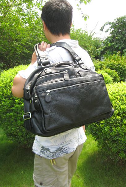 商品产地:广州商品品牌:潮牛商品编号: 6894# 商品质地: 纯牛皮 商品颜色: 黑色商品重量: 1.5KG包包尺寸:宽度48CM*高度37CM*厚度12.5CM包包结构:正面有3个拉链袋;里面有夹层拉链袋1个;手机袋1个;钱包袋1个;还有一个靠墙拉链袋1个;包包里面很宽可以放好多东西。这款包包做工非常完美;男女都可以使用。